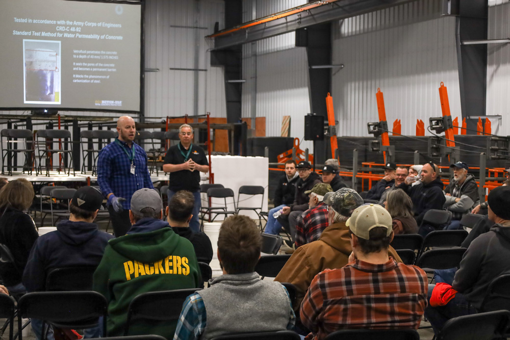 2025 presenters are Topcon (Thursday 8:30 am), Elephant Armor/Vetrofluid (Thursday 11 am), Element ICF (Friday 8:30 am), and Simpson Strong-Tie (Friday 11 am).